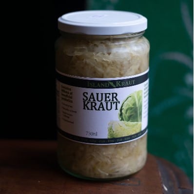 Green Cuisine Sauerkraut and Kimchi Kraut are traditionally made with local Vancouver Island cabbage and celtic sea salt and are fully aged for 2 seasons in ceramic crocks. Including our sauerkraut in your diet is a delicious way to ensure good digestion.