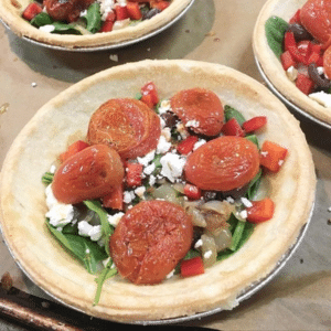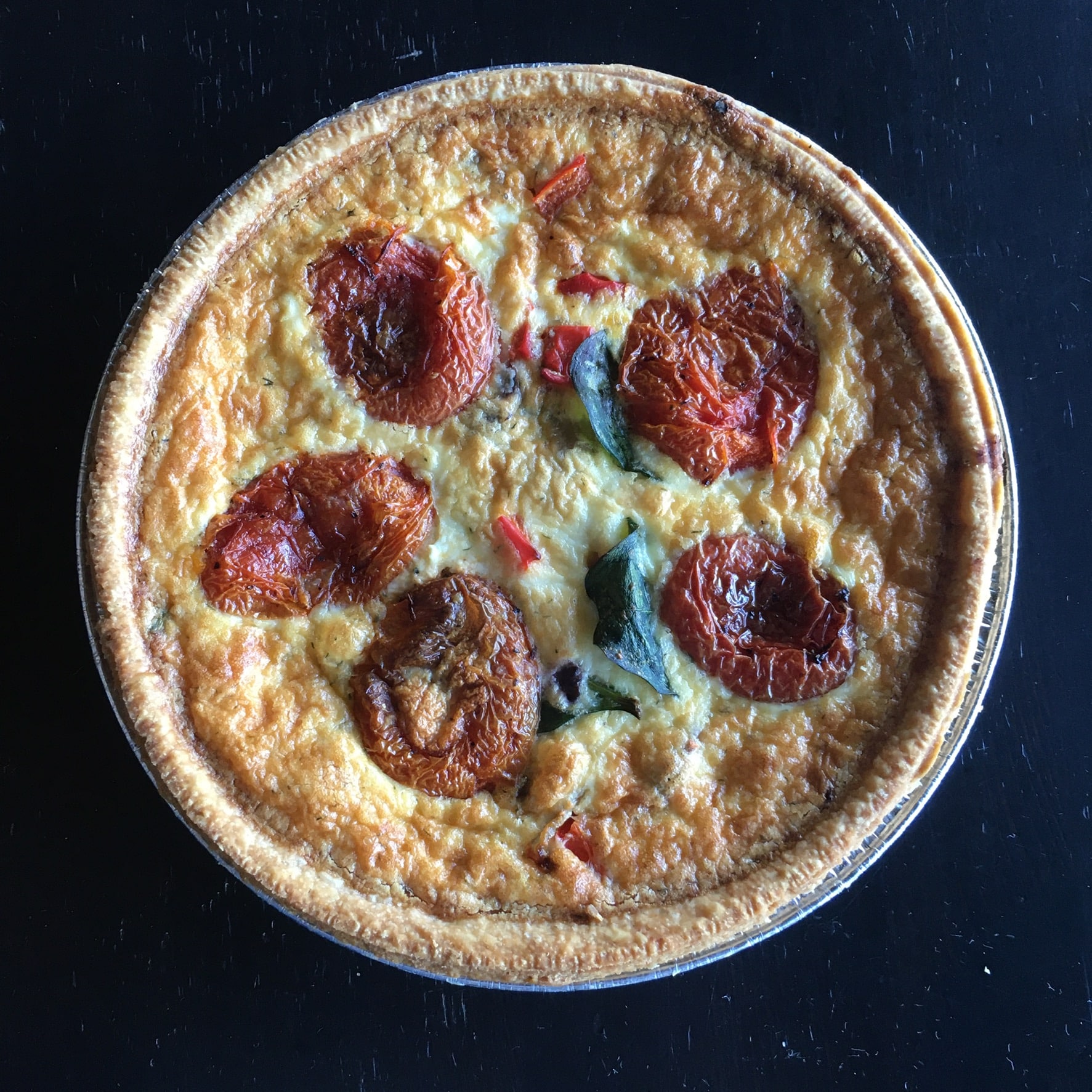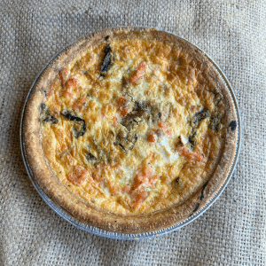 Freshly baked handmade quiche. These full-sized quiche are creamy, cheesy and surrounded by a perfectly crispy crust. You won’t be able to stop at just one slice- trust us!